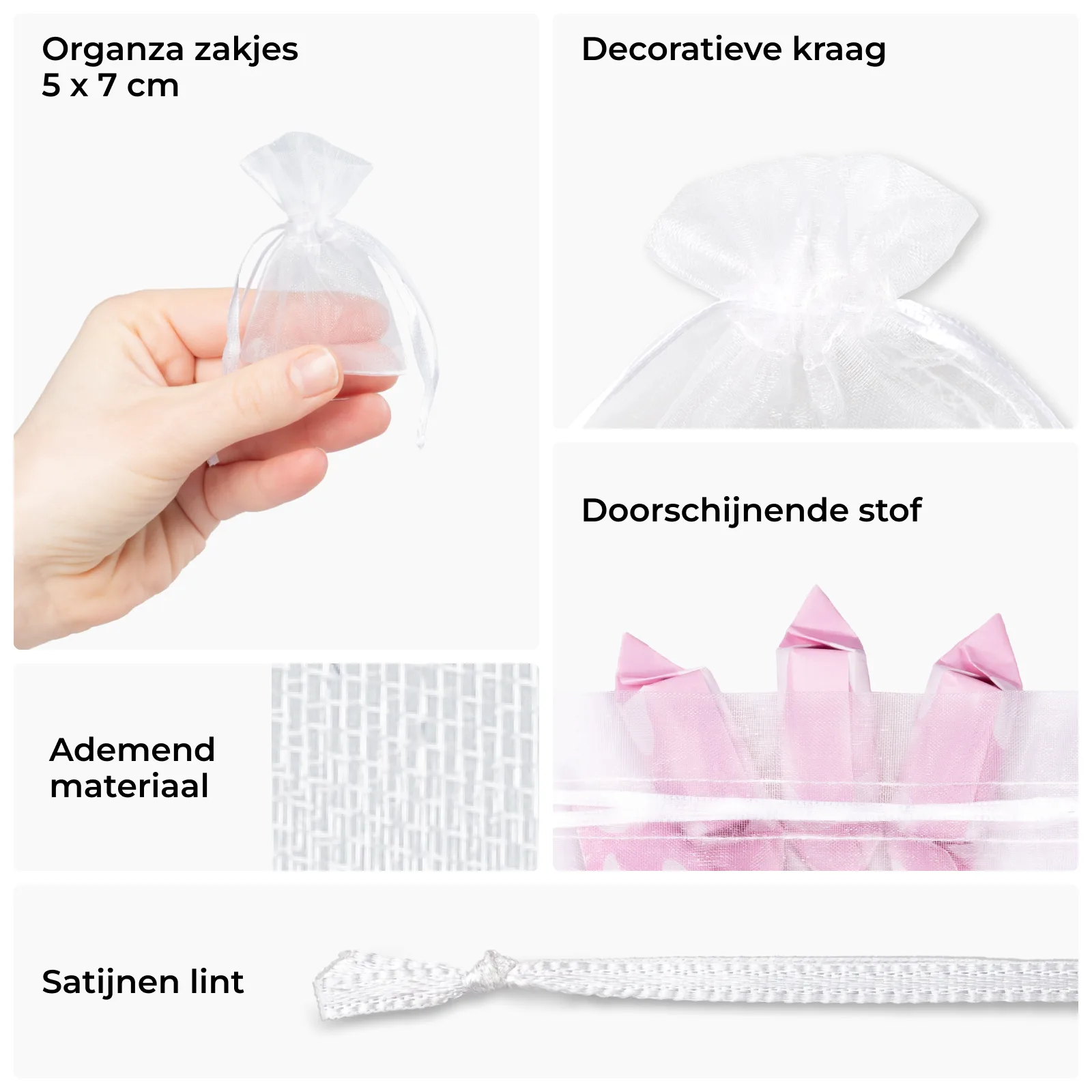 25 stuks Organza zakjes 5 x 7 cm - wit