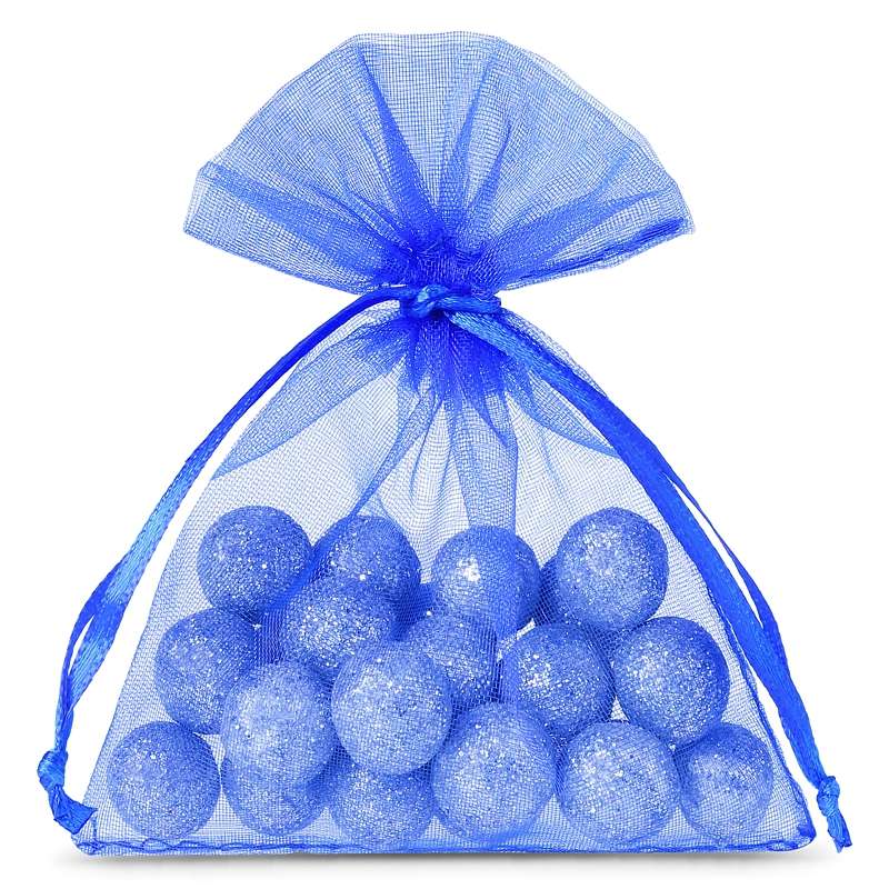 Een praktisch pakket van kleine organzazakjes in de kleur blauw. De afmetingen van eenenkel zakje zijn 8 x 10 cm terwijl de hele set bestaat uit 25 stuks. Zo'n hoeveelheid garandeert dat er elke collectie in opgeborgen kan worden.
