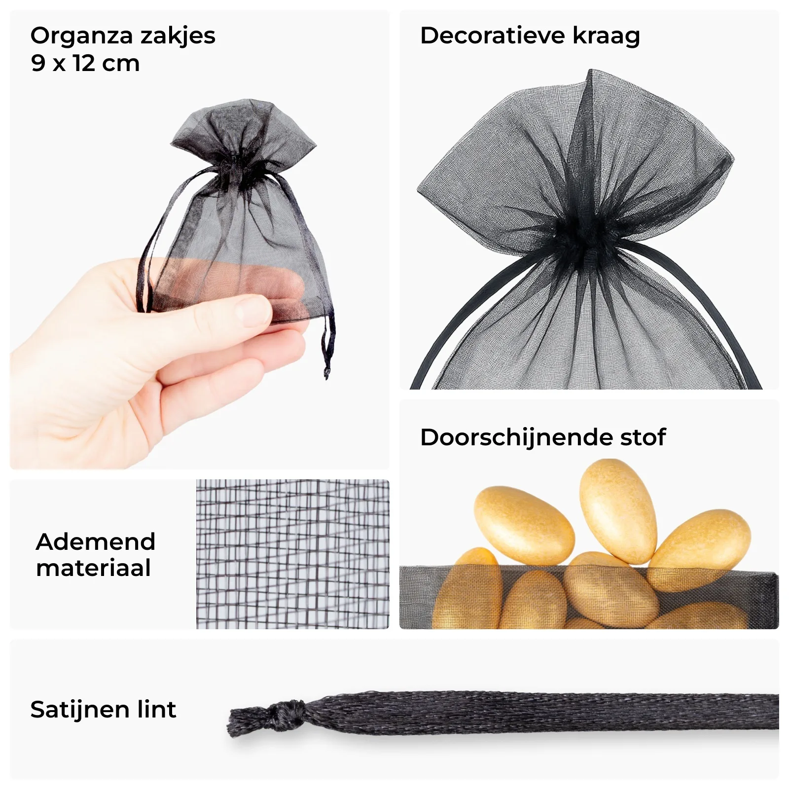 25 stuks Organza zakjes 9 x 12 cm - zwart