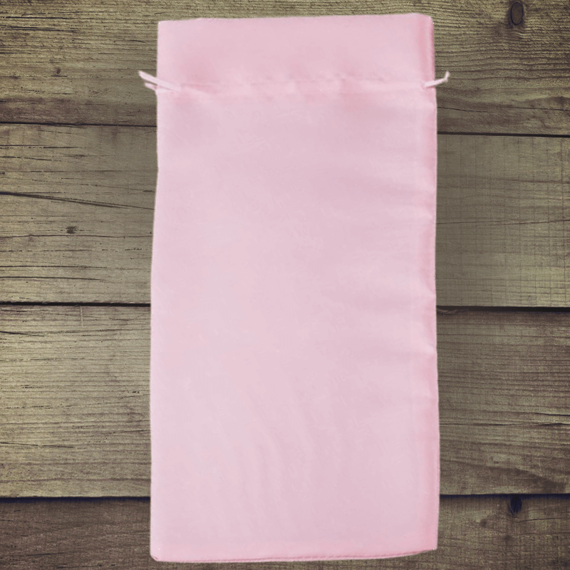 Een collectie van decoratieve zakjes van lichtroze satijn met afmetingen 16 x 37 cm met een hoeveelheid van 1 stuks.