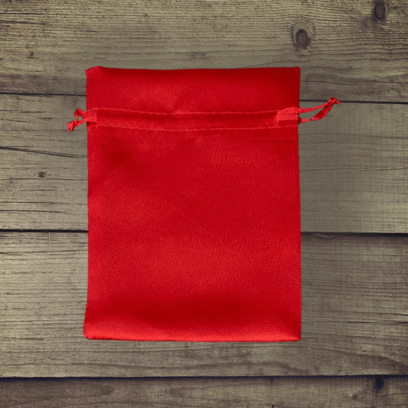 Een collectie van decoratieve zakjes van rood satijn met afmetingen 12 x 15 cm met een hoeveelheid van 10 stuks.