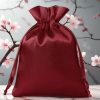 Een collectie van decoratieve zakjes van bordeaux satijn met afmetingen 6 x 8 cm met een hoeveelheid van 10 stuks.