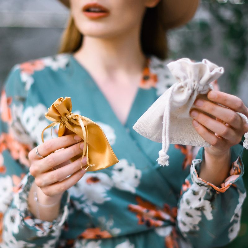 Van satijn worden stijlvolle stoffen zakjes gemaakt die luchtigheid en een originele stijl combineren. Satijn is prettig om aan te raken en presenteert zich ook heel mooi, wat het een ideale stof maakt voor het glamoureus inpakken van juwelen, cosmetica en parfums, zowel om deze thuis op te bergen als deze te schenken als stijlvol cadeau of huwelijksgeschenk - het voordeel van satijn is de veelzijdigheid ervan, waardoor deze elegante satijnen zakjes op heel veel manieren gebruikt kunnen worden.