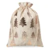 Set van 5 kerst zakjes van jute 18x24 cm - met boompjes in goud en koper