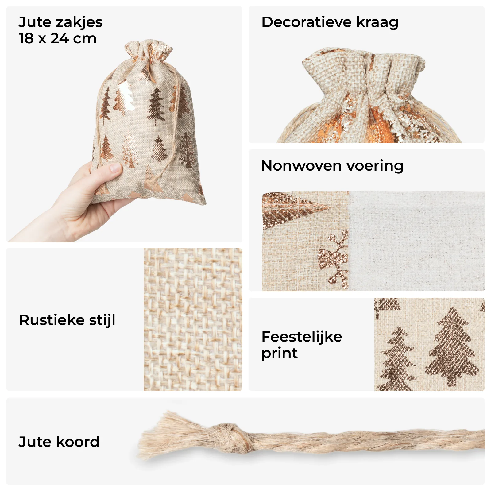 Jute kerstzakjes 18x24 cm - feestelijk verpakken met natuurlijke charme
