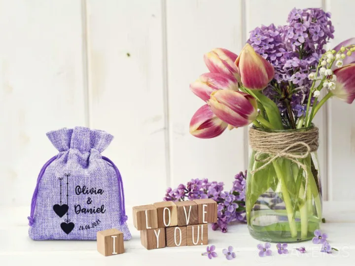 Ook leuk zijn zakjes met decoratieve pailletten of met vilten sierelmenten. 3D versieringen op linnen zakjes zijn een regelrechte hit!